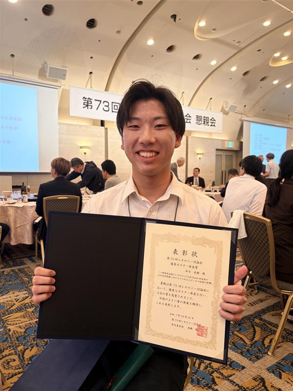 工学専攻機械工学プログラムの加古直樹さんが第73回レオロジー討論会 優秀ポスター発表賞を受賞しました