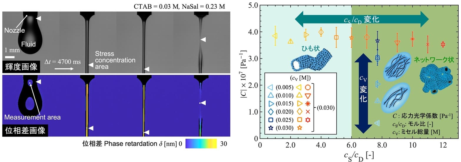 「一軸伸長流動下におけるCTAB/NaSal水溶液の応力光学係数に対するモル比およびミセル総量の影響」